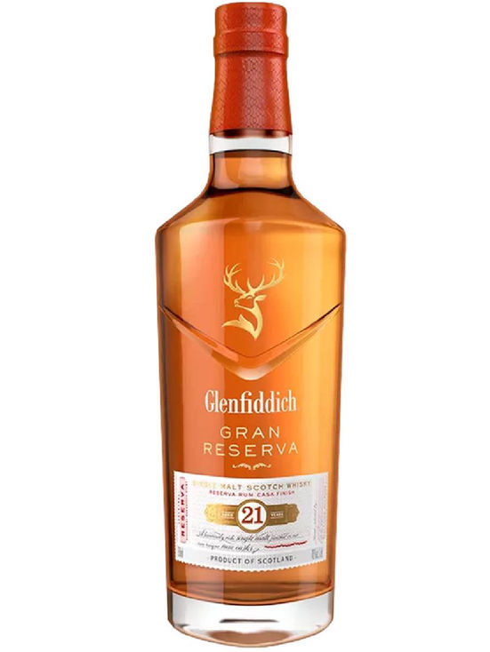 Glenfiddich 21 Years is a single malt Scotch whisky produced in Scotland. The whisky is crafted using malted barley, which is fermented and distilled in copper pot stills. The resulting spirit is aged in a combination of American oak, European oak, and Caribbean rum casks for at least 21 years. The resulting whisky is rich and complex, with notes of toffee, fig, and a hint of banana.